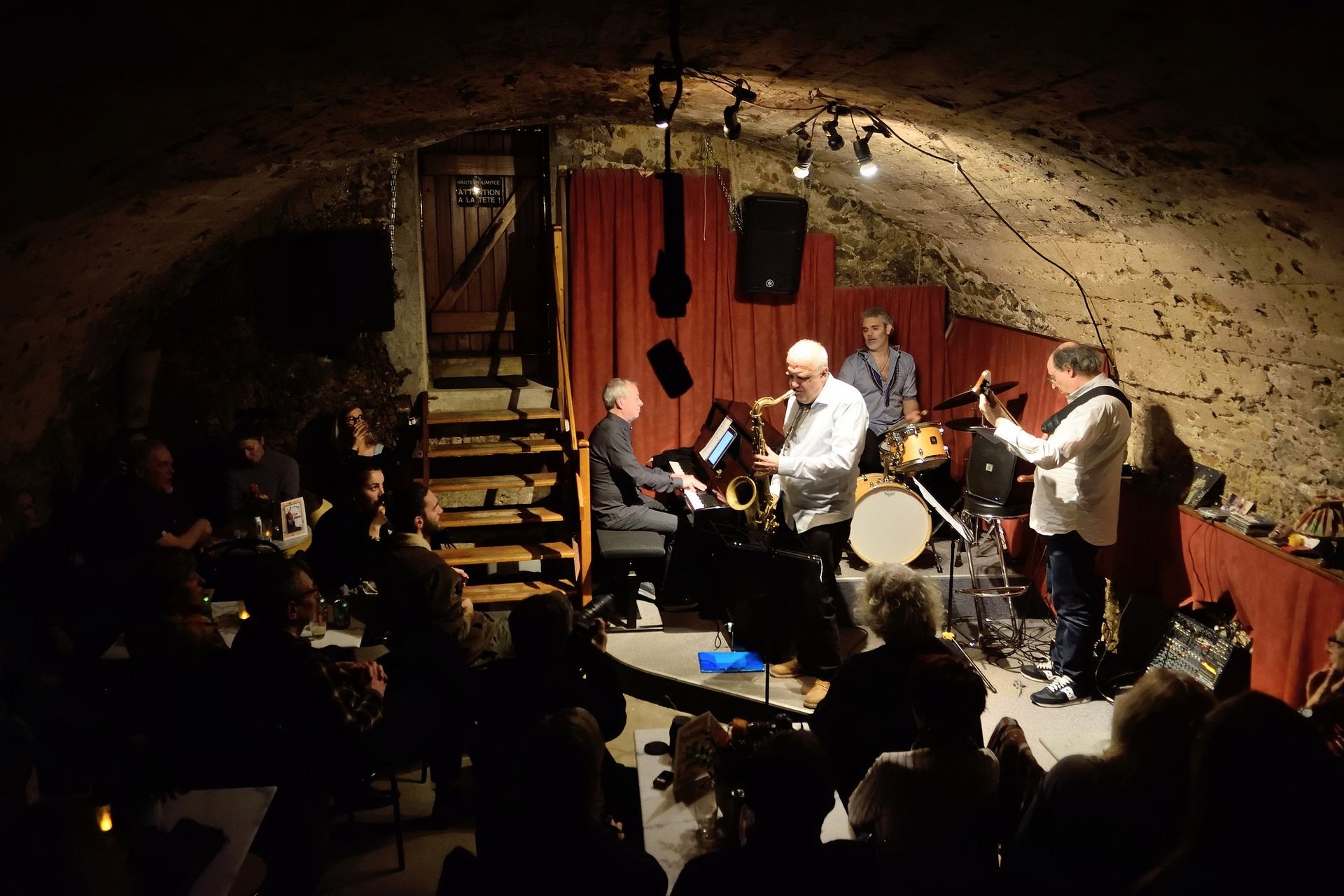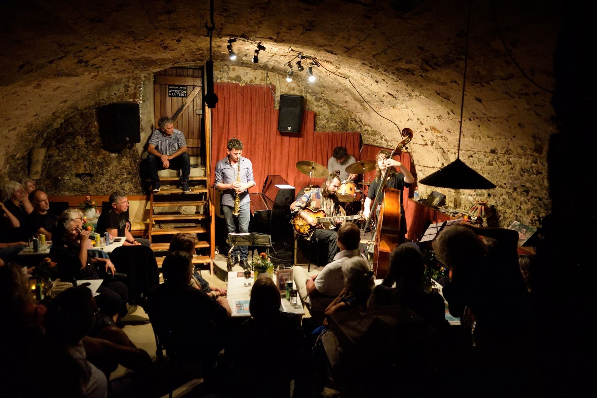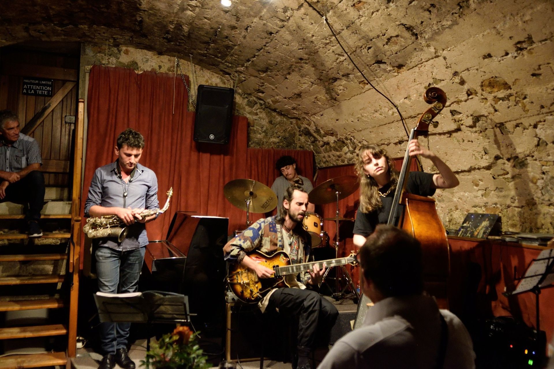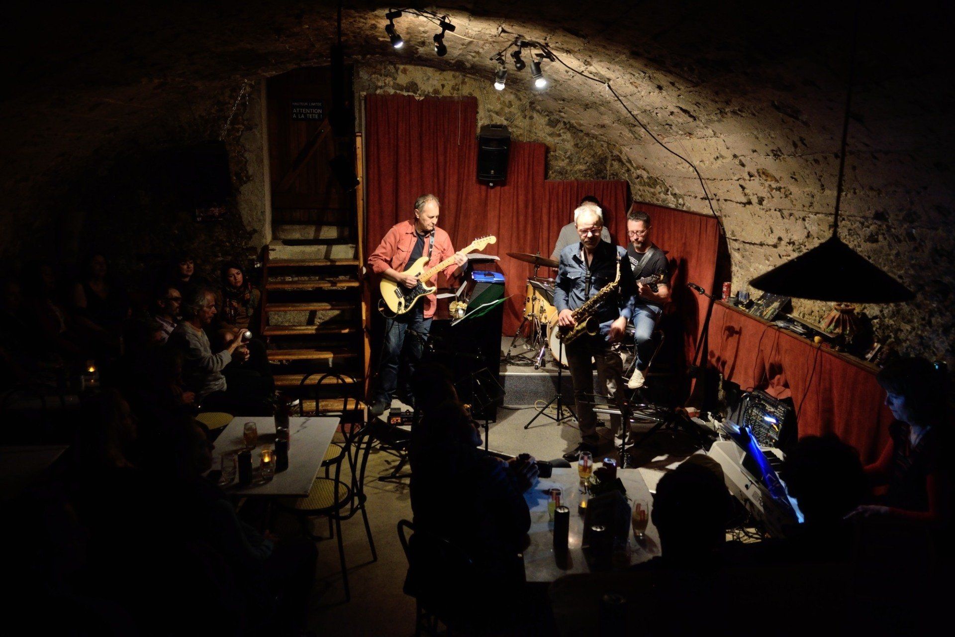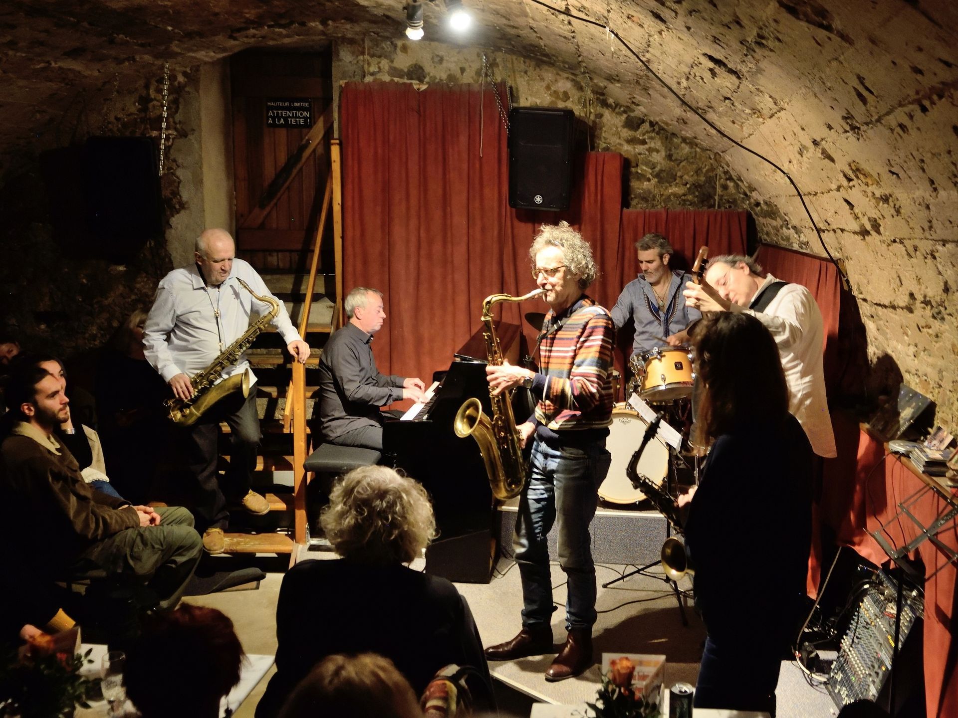 En première partie, la Compagnie So What était privée pour un soir de son saxophoniste Thomas Guillemaud. C'est donc en quartet que la Compagnie a commencé son set, vite renforcée par un autre saxophoniste, ami très cher et l'un des premiers musiciens à s'être produit dans les lieux, voici 28 ans : Franck Taschini. Le groupe s'en est donné à coeur joie !