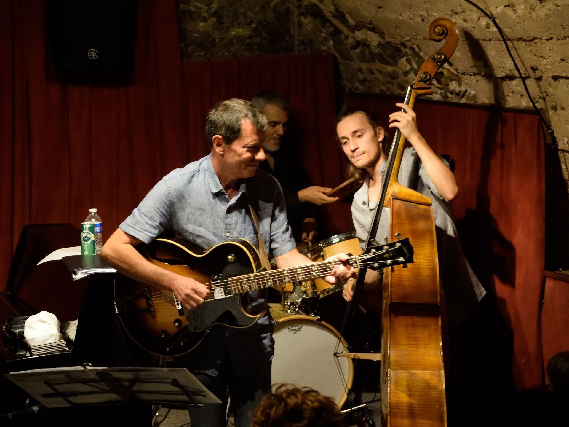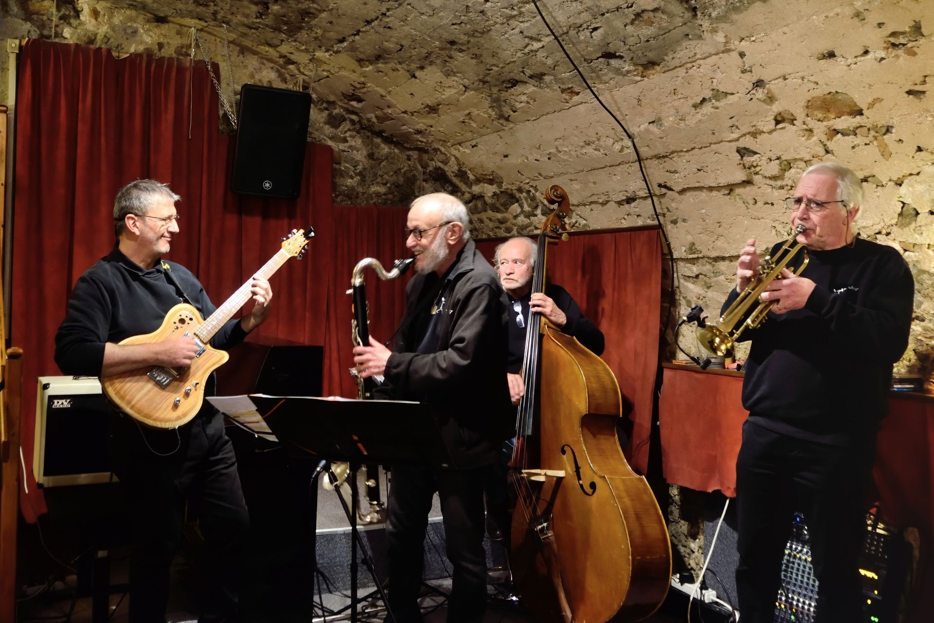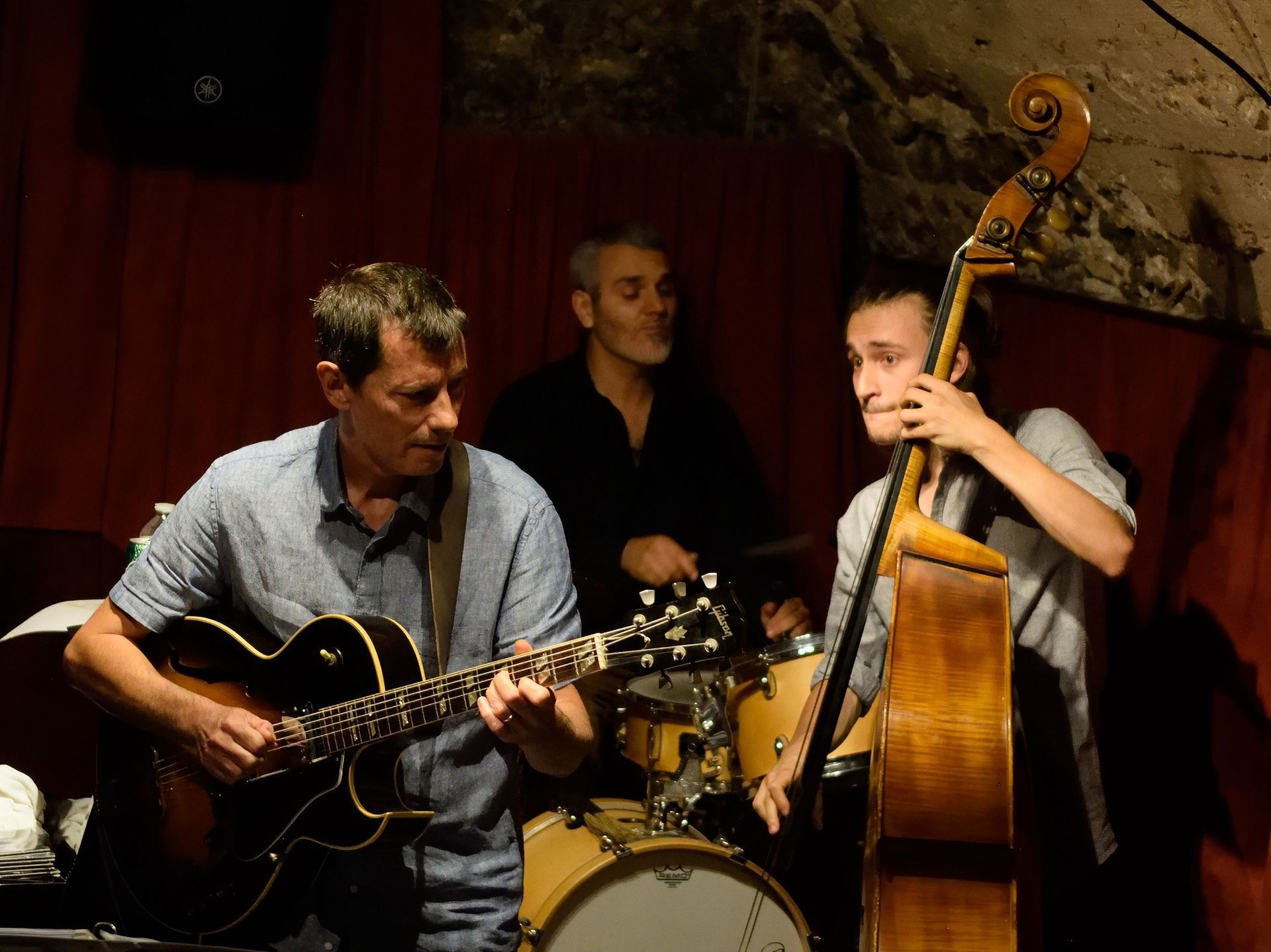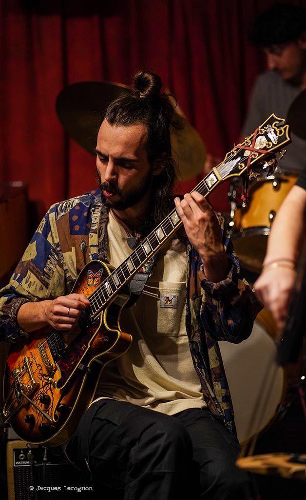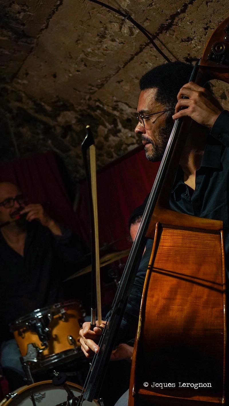 En deuxième partie de soirée, nous avons reçu pour la première fois le grand guitariste Pierre Bertrand, accompagné du jeune et talentueux contrebassiste Clément Douziech, lui aussi nouveau venu, et d'un habitué des lieux, l'excellent batteur Jérôme Achat. Un répertoire riche, des interprétations intenses et émouvantes, comme cette adaptation très personnelle et très réussie du célèbre Wonderful World d'Armstrong. Et pour terminer cette belle session, Franck Taschini a rejoint le trio pour le bonheur de tous.