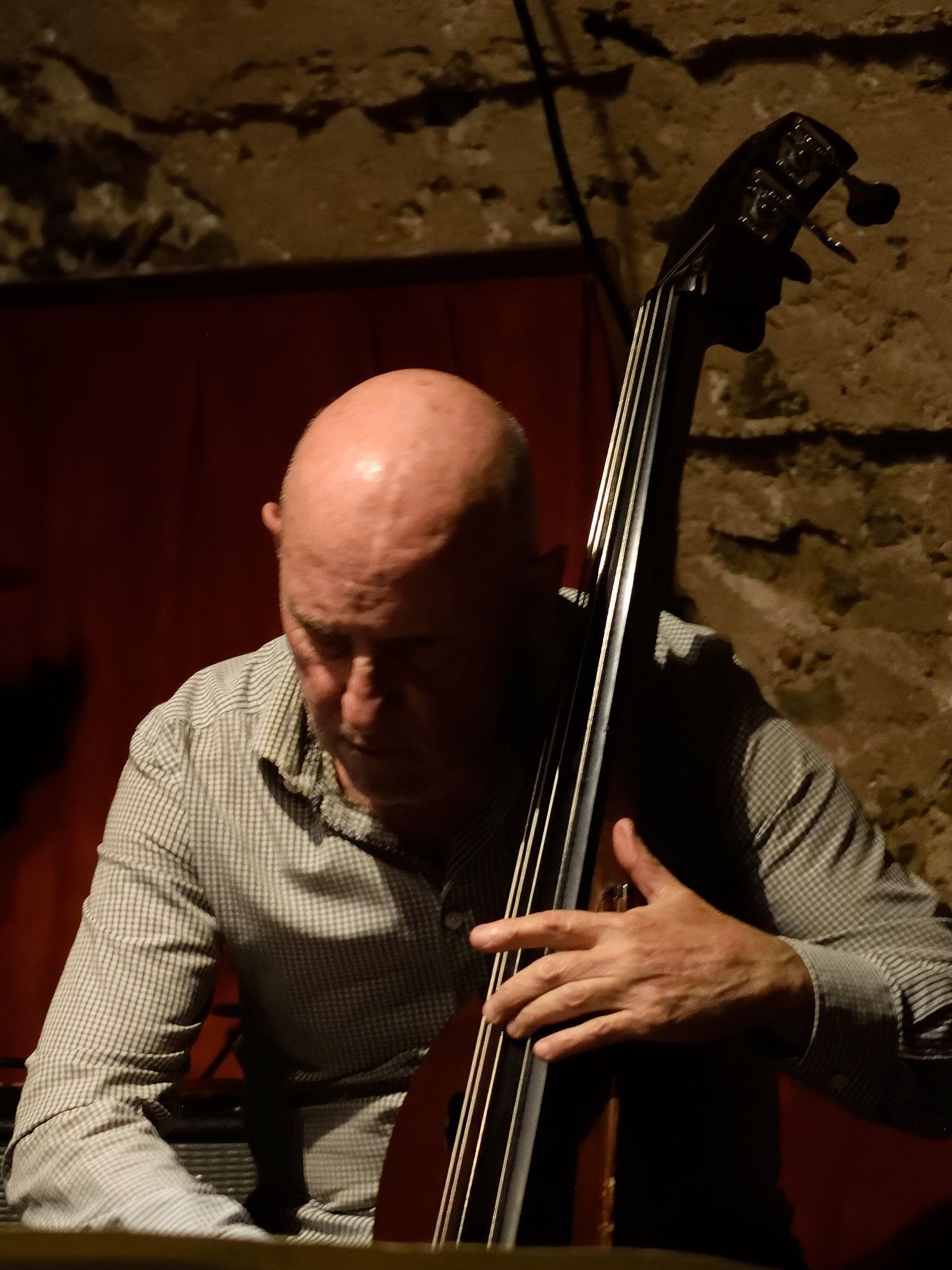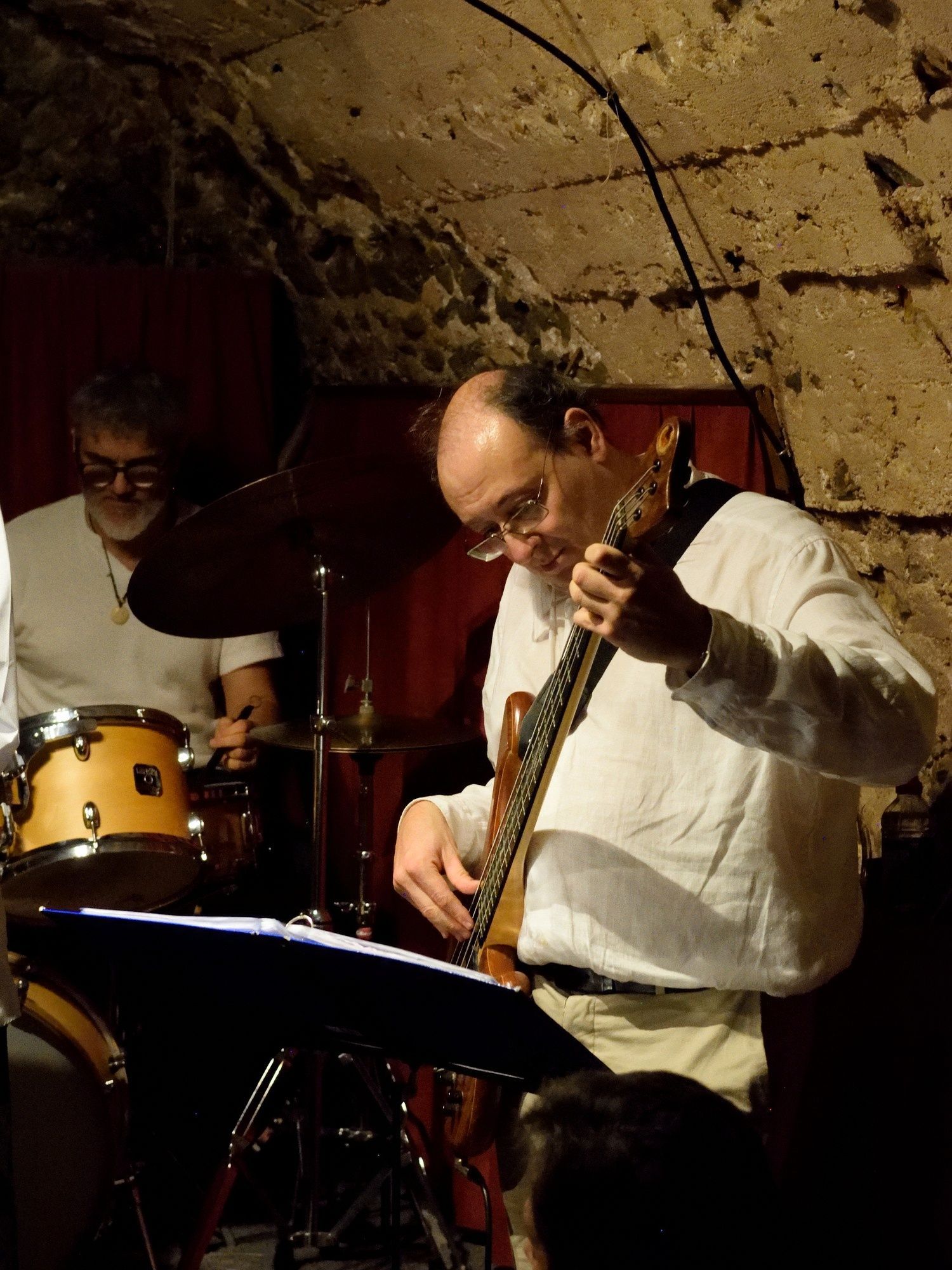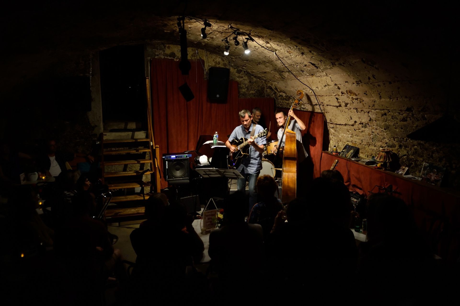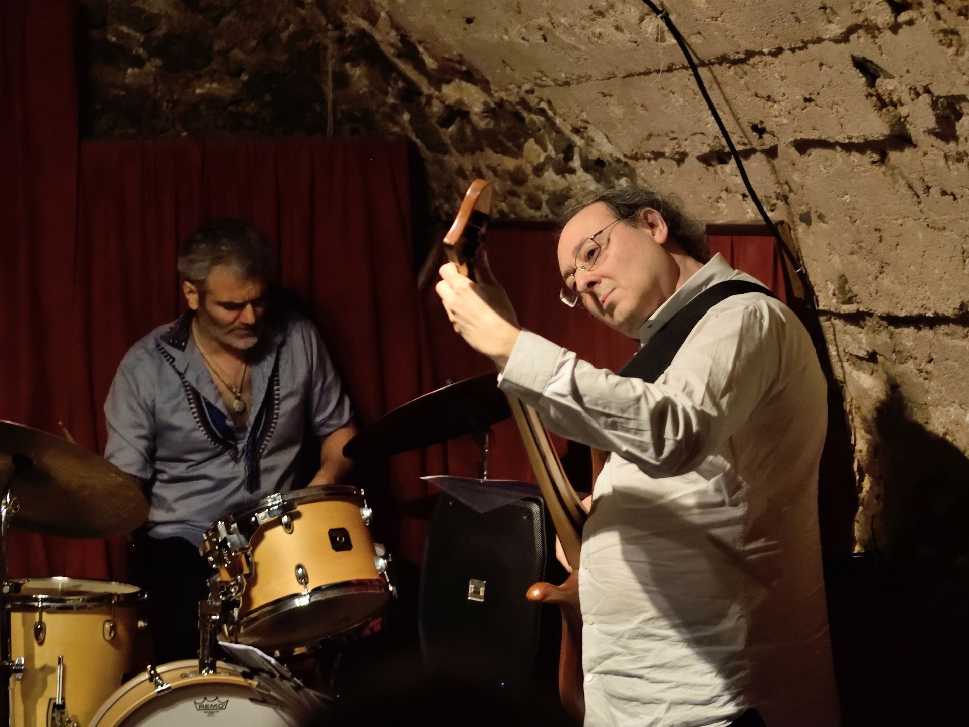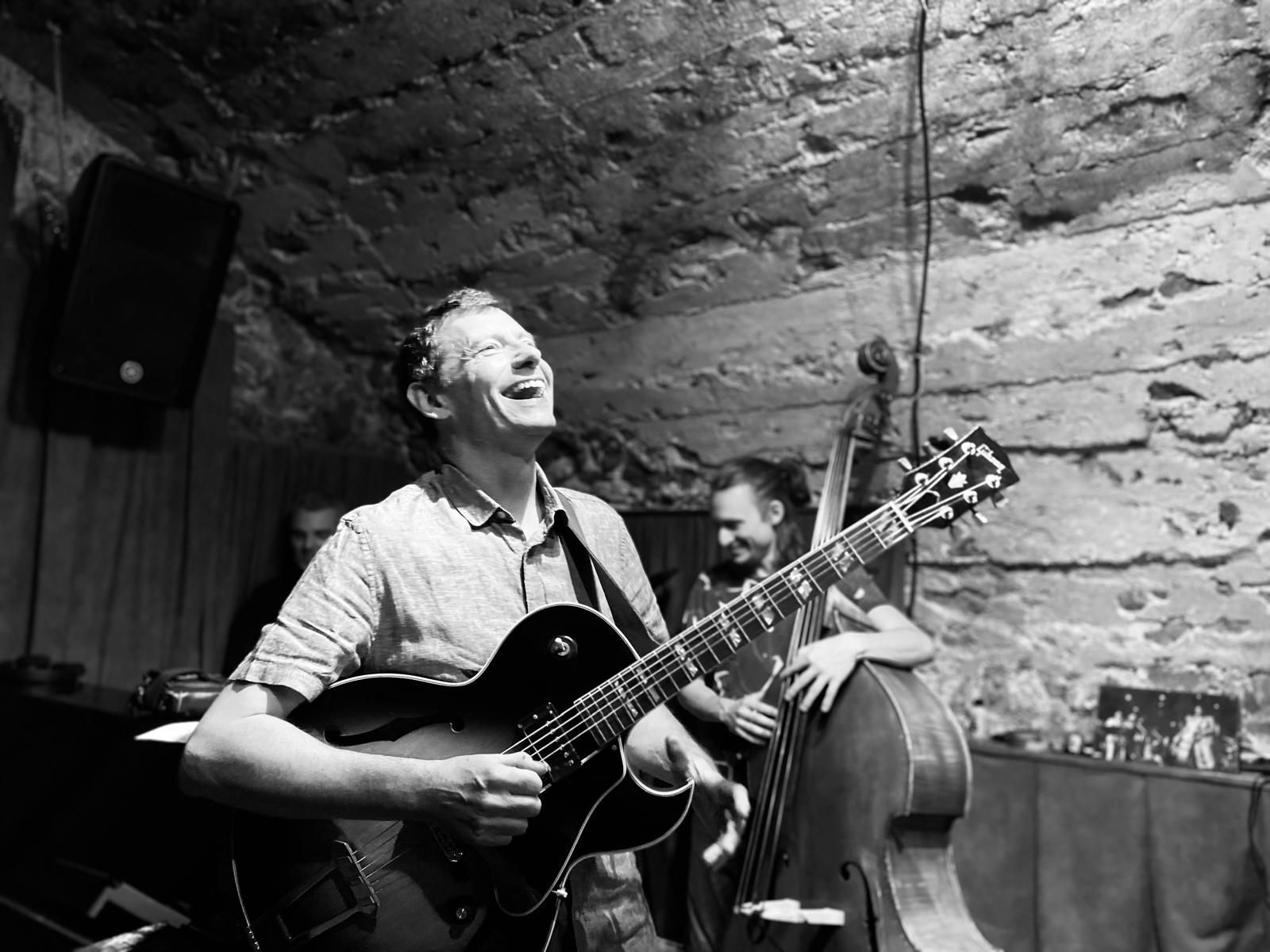 En deuxième partie de soirée, nous avons reçu pour la première fois le grand guitariste Pierre Bertrand, accompagné du jeune et talentueux contrebassiste Clément Douziech, lui aussi nouveau venu, et d'un habitué des lieux, l'excellent batteur Jérôme Achat. Un répertoire riche, des interprétations intenses et émouvantes, comme cette adaptation très personnelle et très réussie du célèbre Wonderful World d'Armstrong. Et pour terminer cette belle session, Franck Taschini a rejoint le trio pour le bonheur de tous.