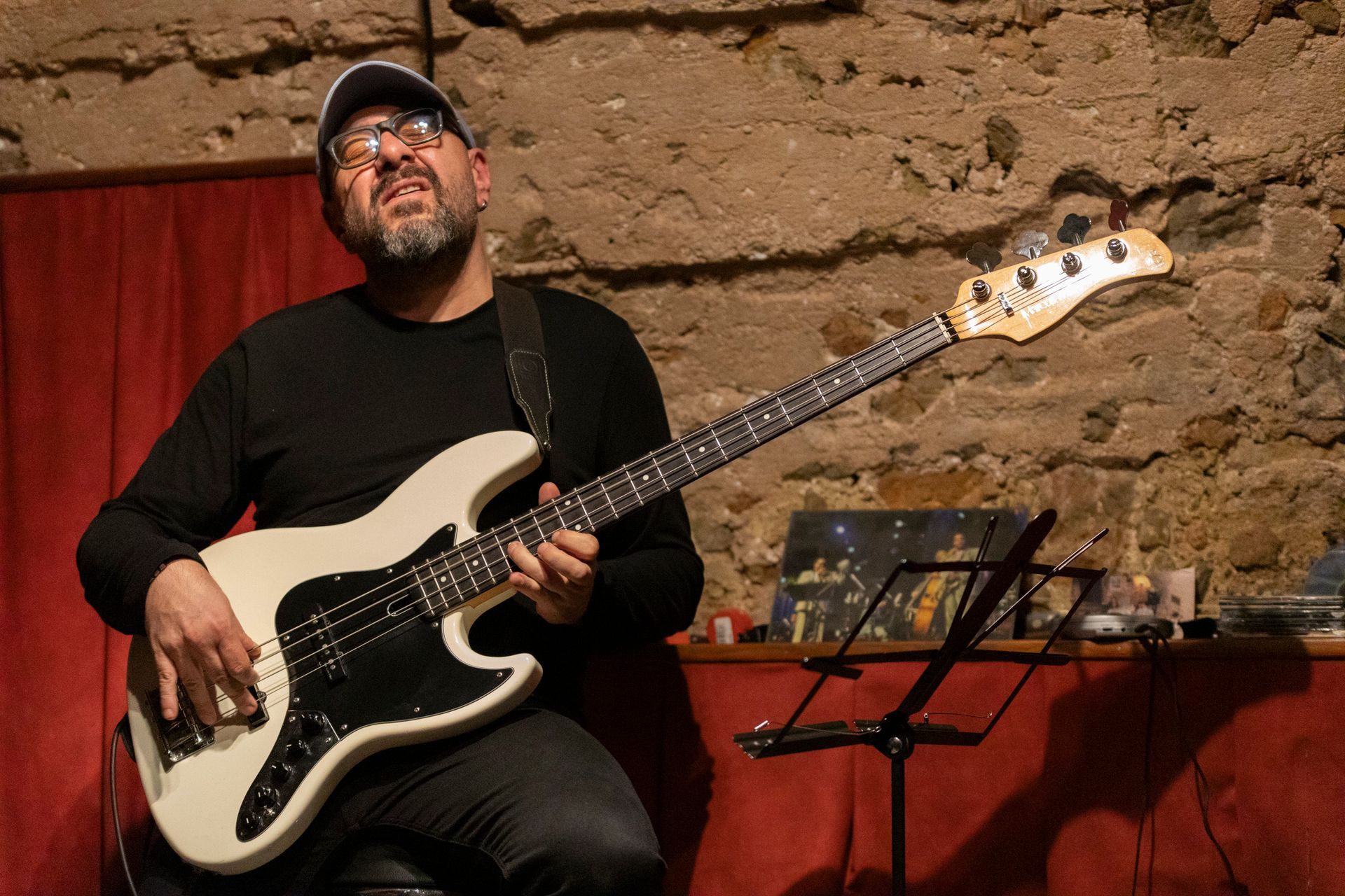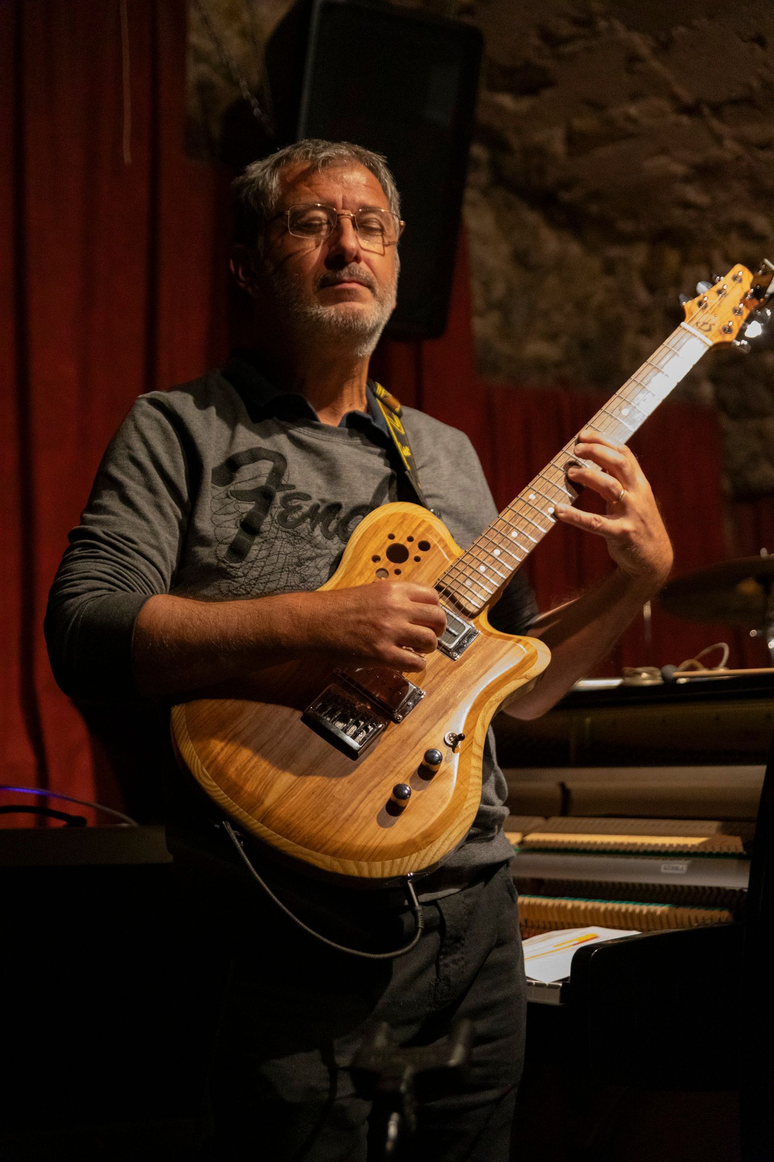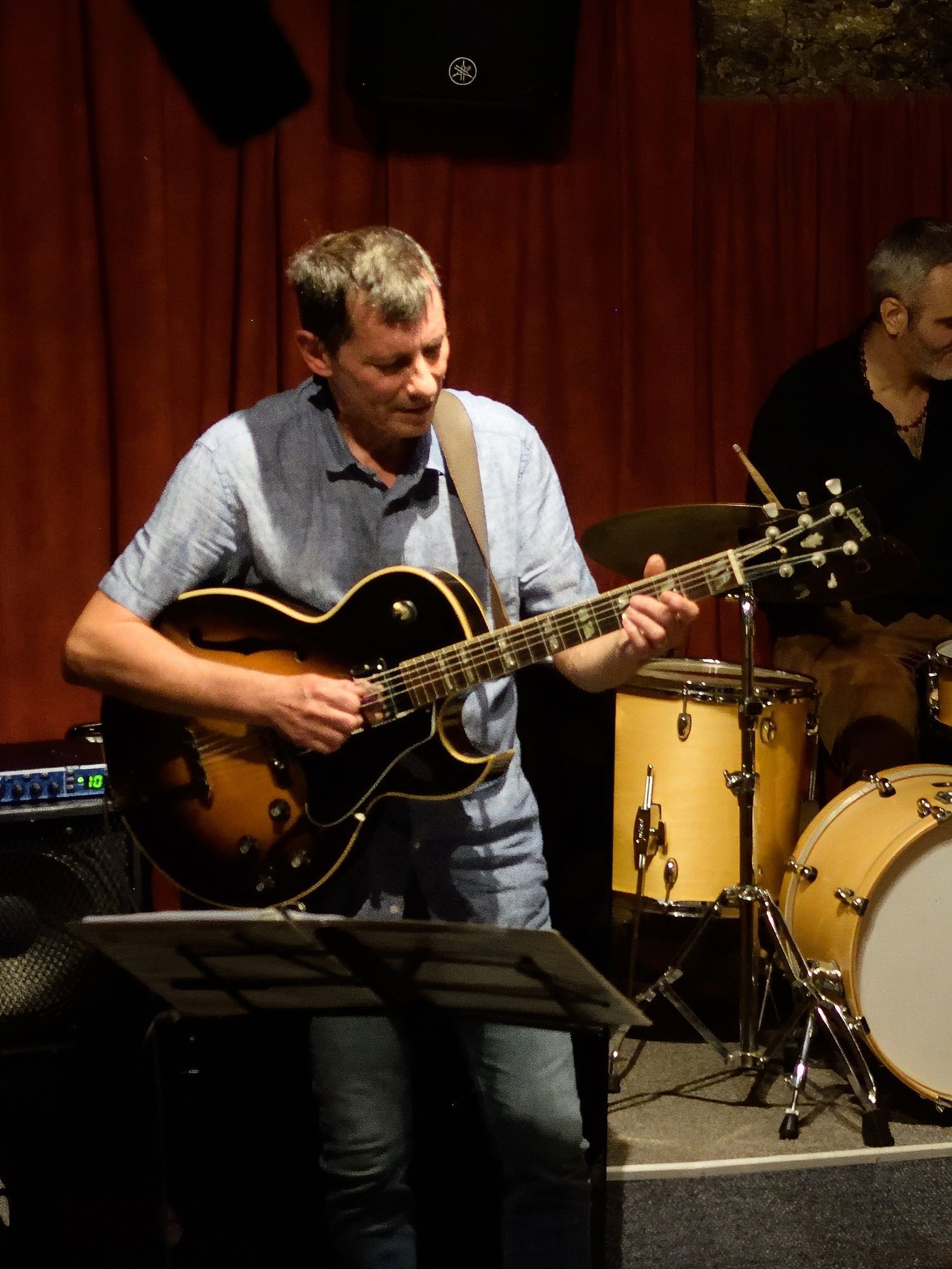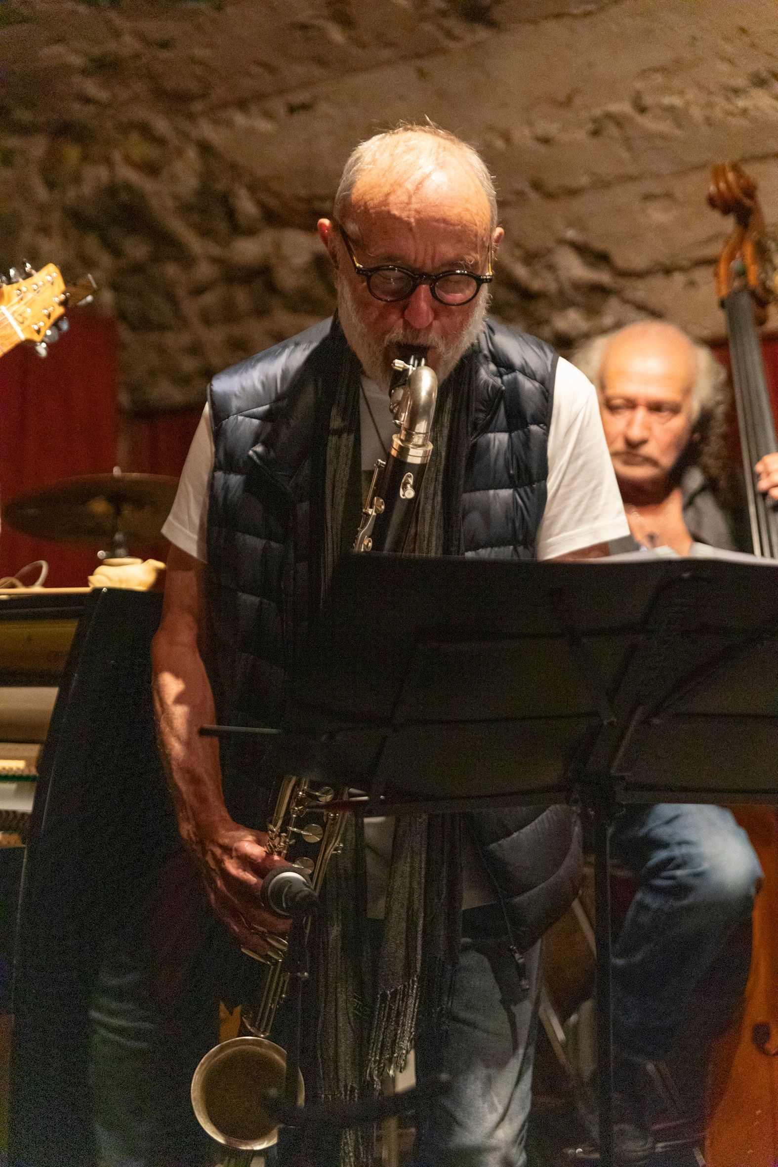 En deuxième partie de soirée, nous avons reçu pour la première fois le grand guitariste Pierre Bertrand, accompagné du jeune et talentueux contrebassiste Clément Douziech, lui aussi nouveau venu, et d'un habitué des lieux, l'excellent batteur Jérôme Achat. Un répertoire riche, des interprétations intenses et émouvantes, comme cette adaptation très personnelle et très réussie du célèbre Wonderful World d'Armstrong. Et pour terminer cette belle session, Franck Taschini a rejoint le trio pour le bonheur de tous.