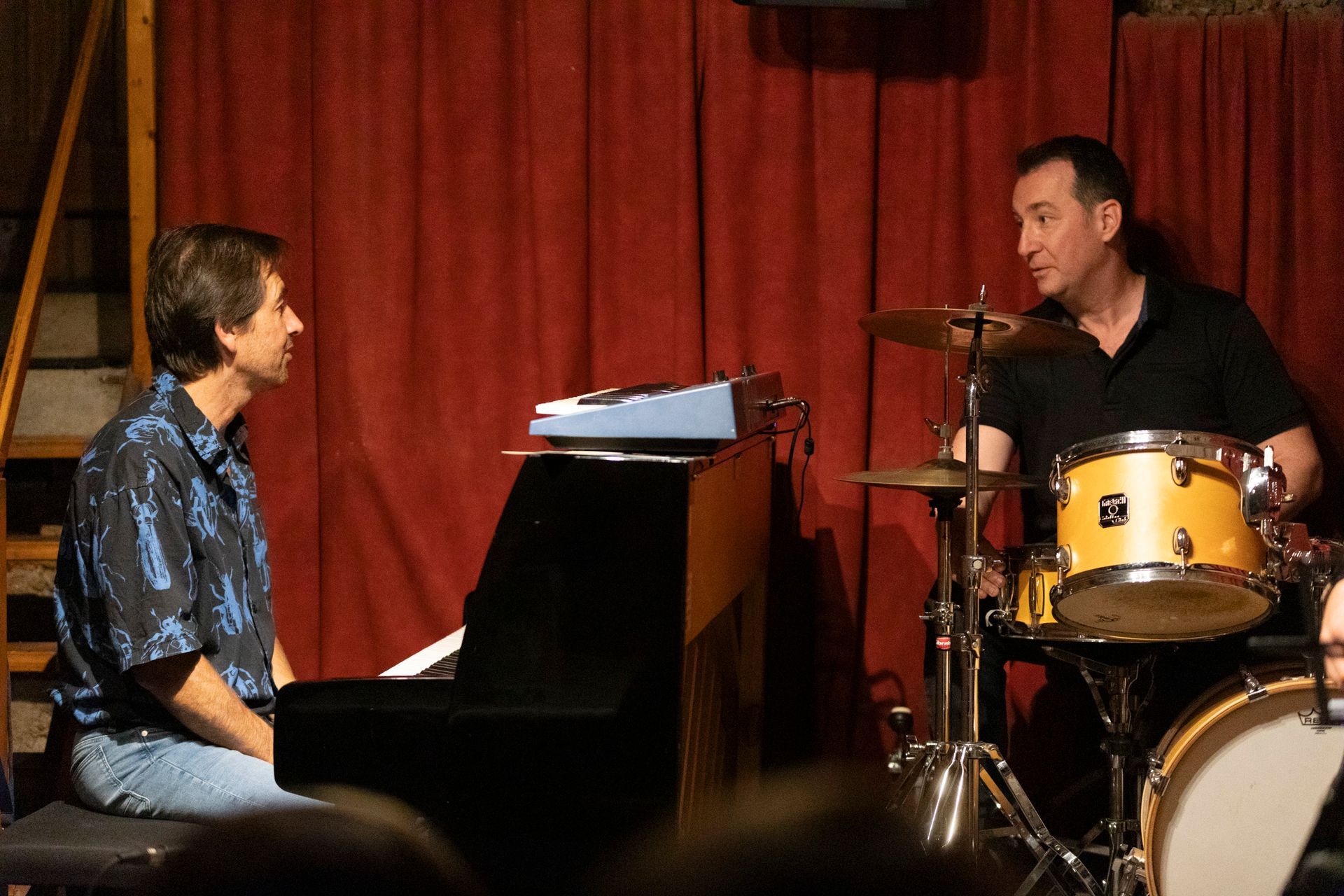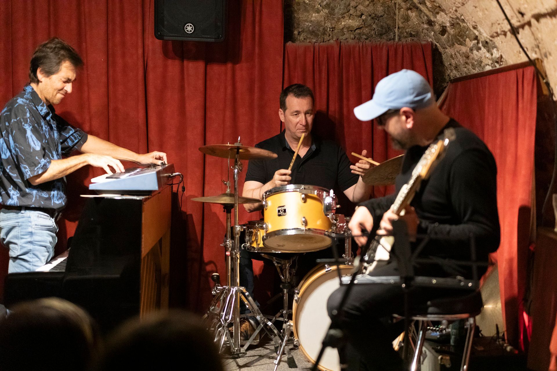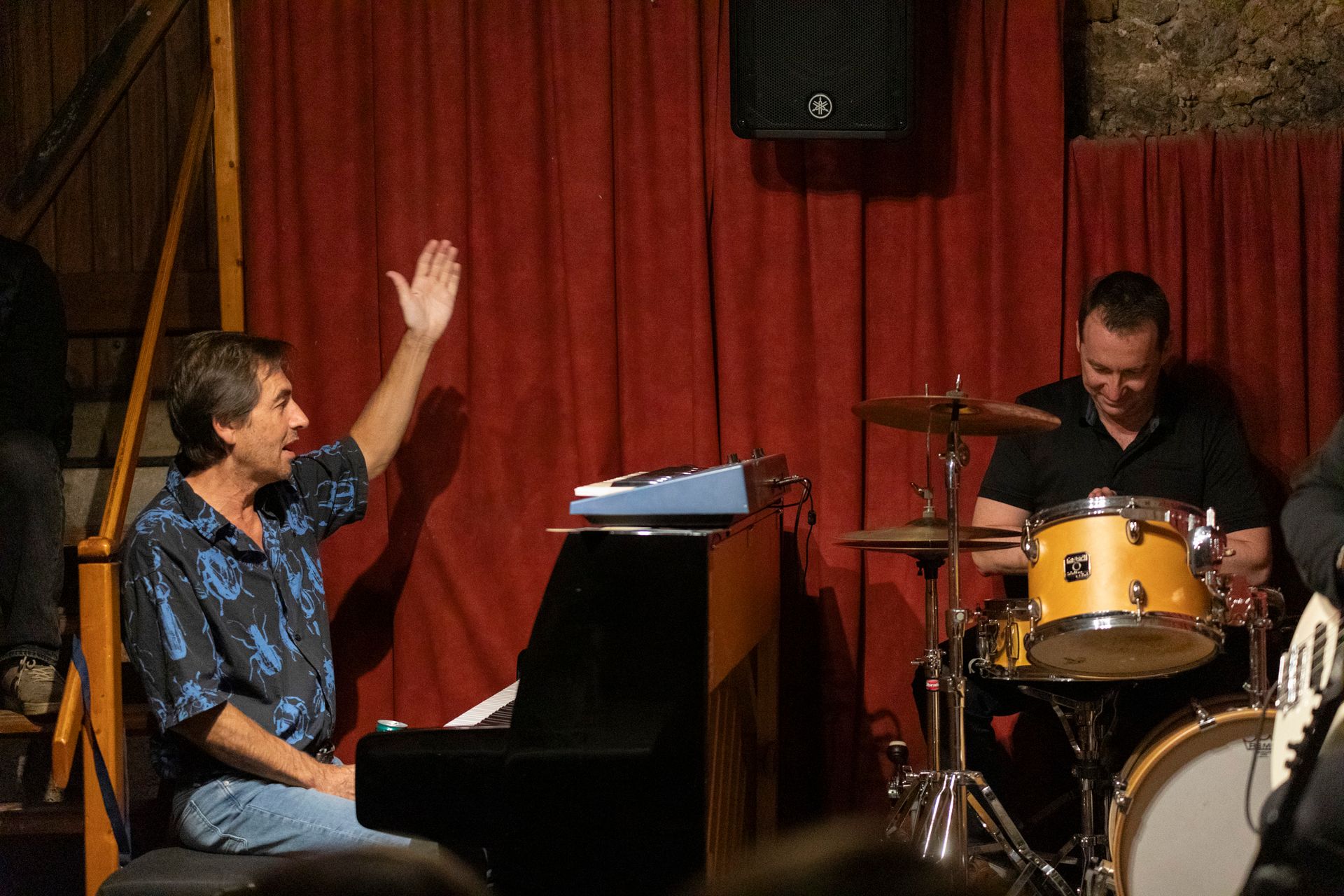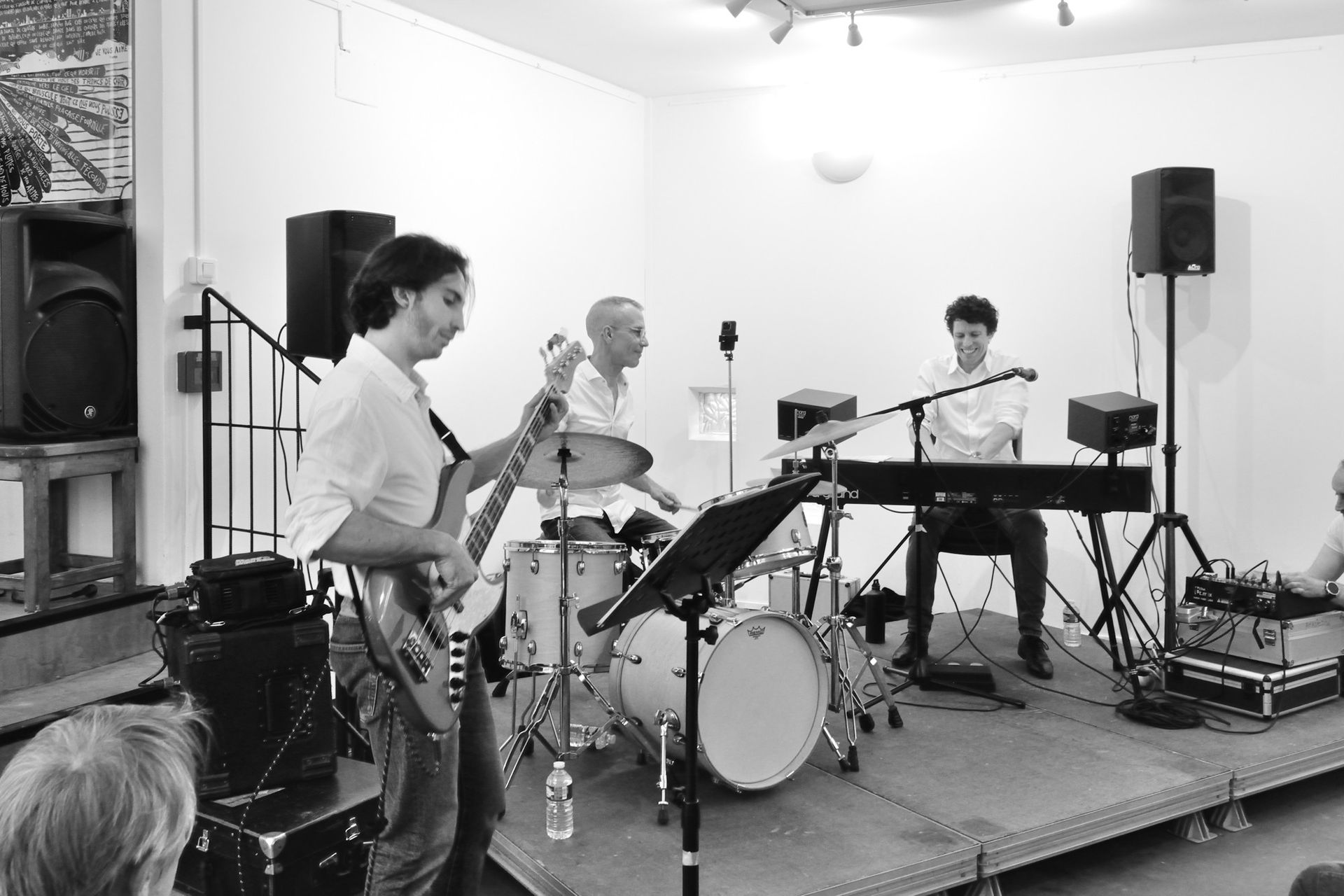 Après le set de la COMPAGNIE SO WHAT, en format quartet, nous avons reçu le ARNOISE JAZZ PROJECT. Depuis plus de 20 ans, Arnoïse, batteur ultra-polyvalent, forme des groupes inédits en s'associant toujours aux meilleurs musiciens de la Côte. Pour cette soirée, avec ses compères Fred D'Oelsnitz au piano et Lasha Lucaselias à la basse, il nous a proposé des compositions jazz funk fusion originales et des reprises revisitées étonnantes et détonantes truffées d’improvisations : Chick Corea, Herbie Hancock, Hendrix, Coltrane, Miles Davis, Stevie Wonder, etc. Quelle soirée encore !