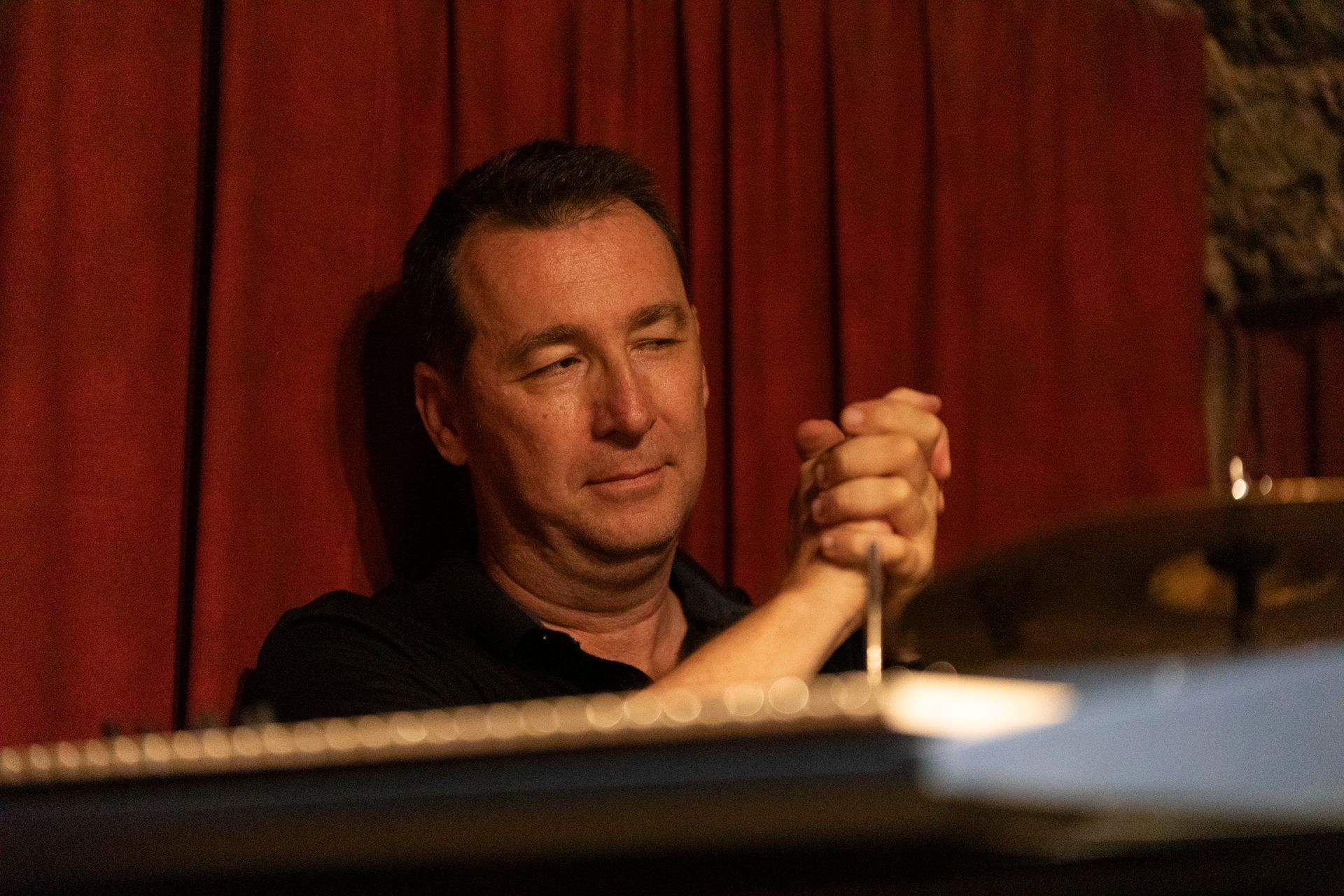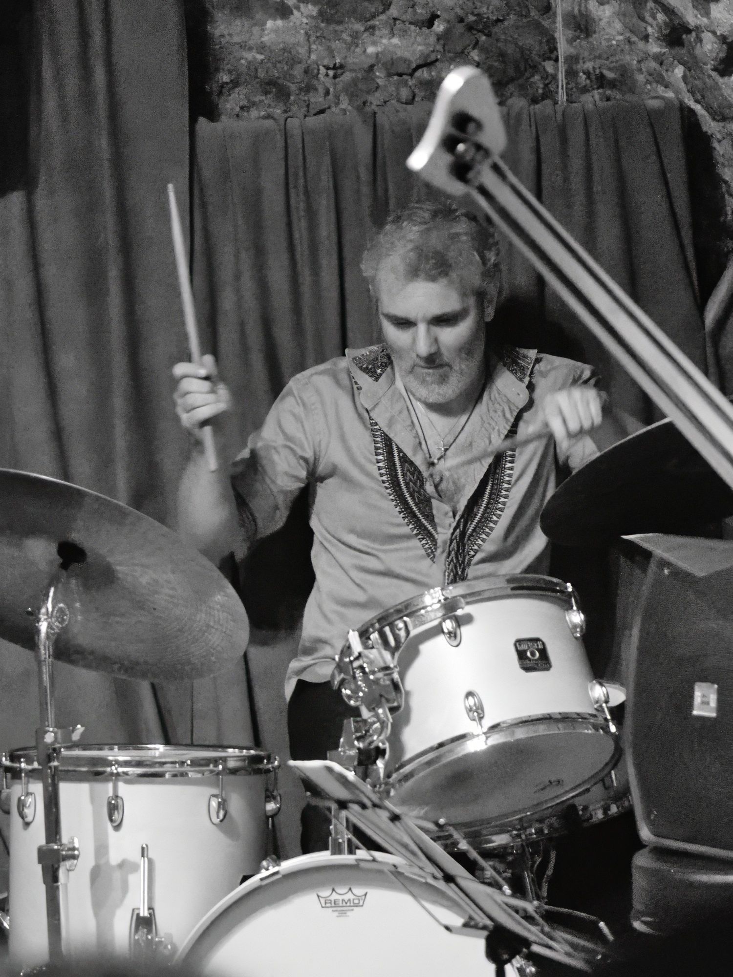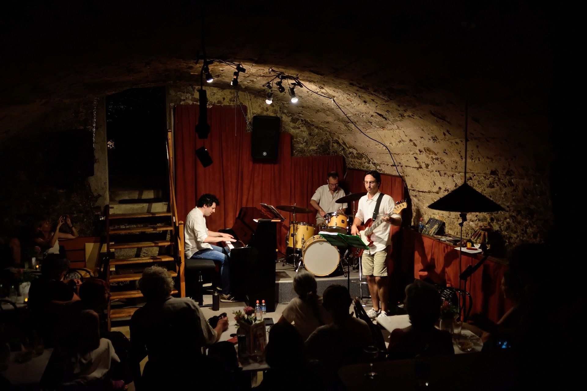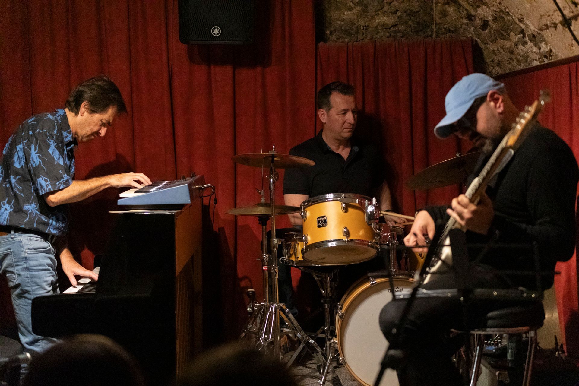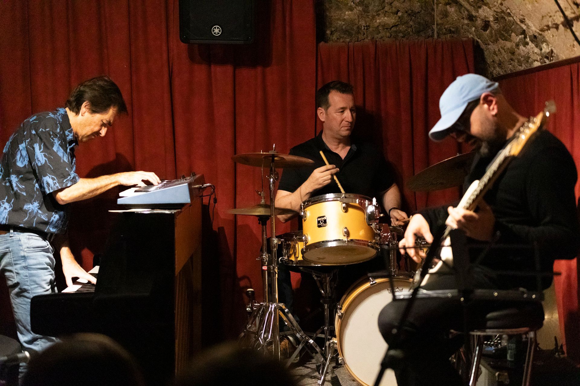Après le set de la COMPAGNIE SO WHAT, en format quartet, nous avons reçu le ARNOISE JAZZ PROJECT. Depuis plus de 20 ans, Arnoïse, batteur ultra-polyvalent, forme des groupes inédits en s'associant toujours aux meilleurs musiciens de la Côte. Pour cette soirée, avec ses compères Fred D'Oelsnitz au piano et Lasha Lucaselias à la basse, il nous a proposé des compositions jazz funk fusion originales et des reprises revisitées étonnantes et détonantes truffées d’improvisations : Chick Corea, Herbie Hancock, Hendrix, Coltrane, Miles Davis, Stevie Wonder, etc. Quelle soirée encore !