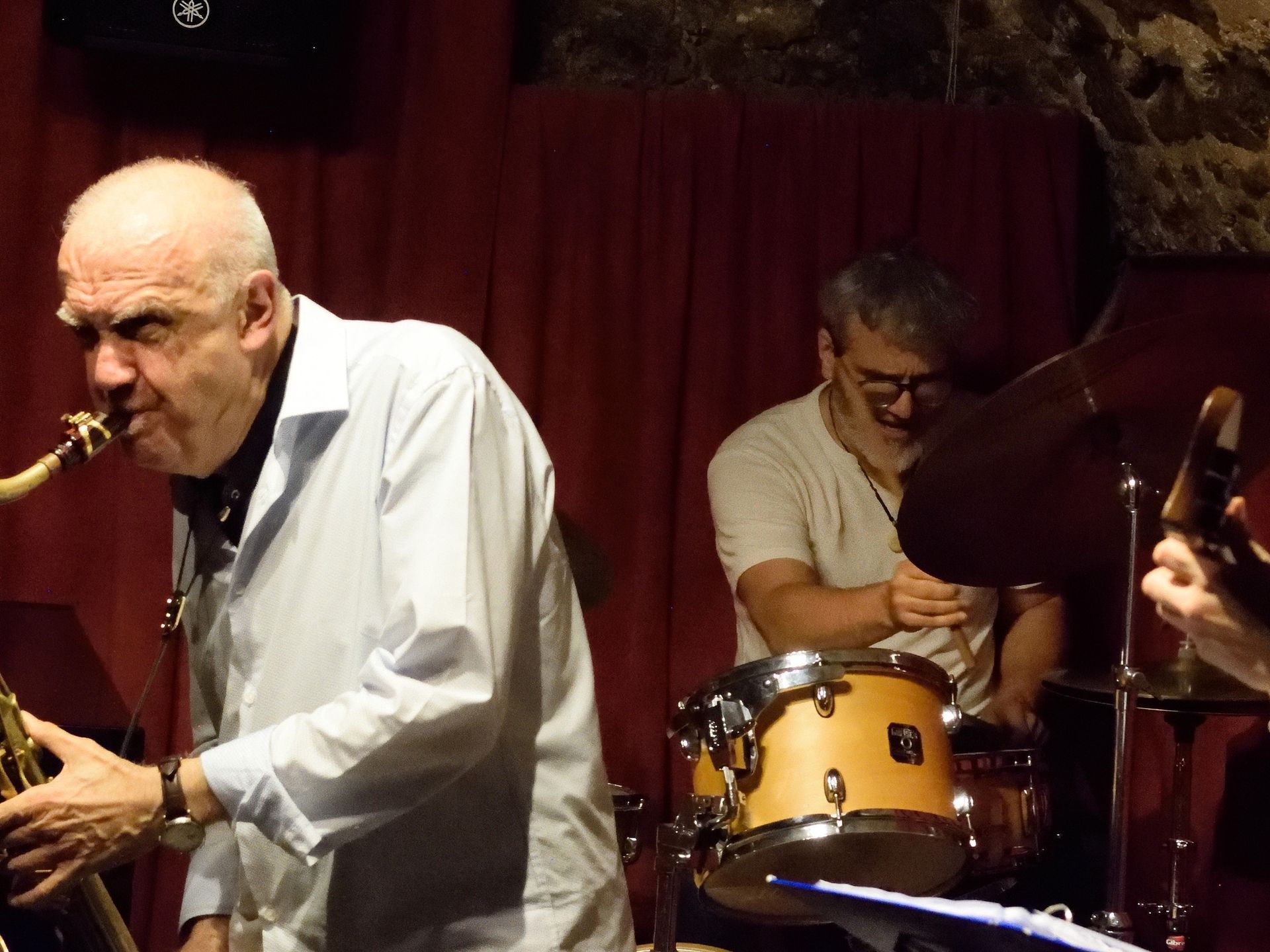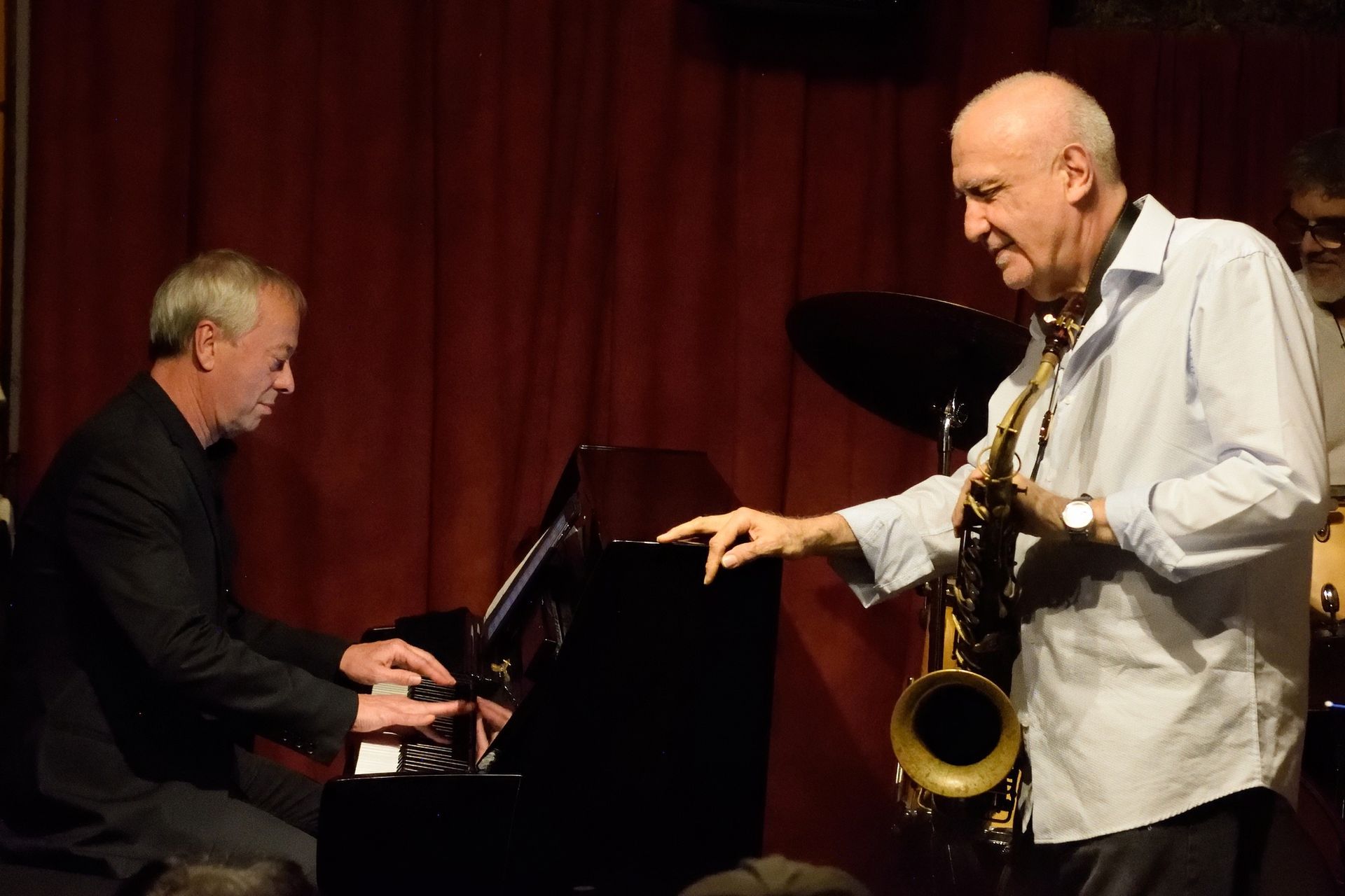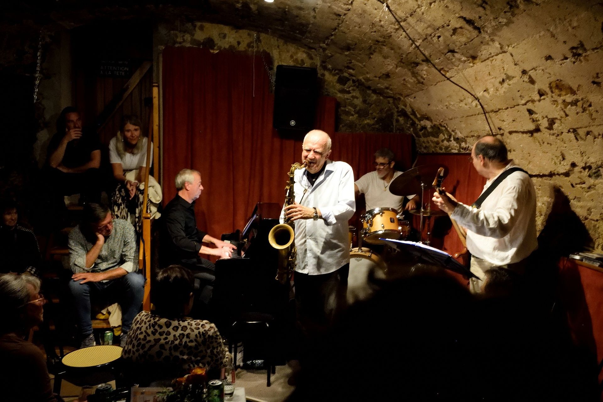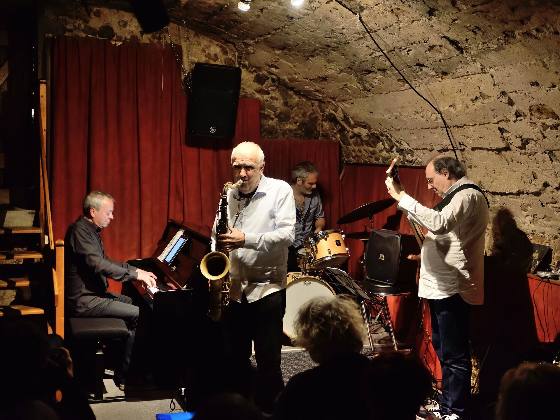 Ensuite, comme c'est rituellement le cas depuis des années, la deuxième partie de cette soirée de janvier était confiée à notre vieux complice, le saxophoniste Franck Taschini, venu cette fois-ci en quartet avec Laurent Rossi au piano, Alberto Micciché à la basse et Jérôme Achat à la batterie. Et cerise sur le gâteau, le bœuf a permis de savourer l'apport de deux saxophonistes d'exception : Tullia Morand à l'alto et Pierre Mimran au ténor. Encore une soirée mémorable !