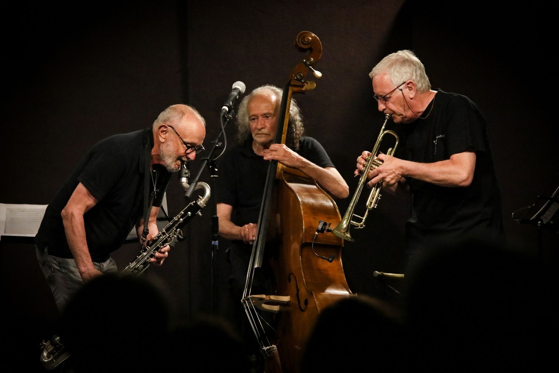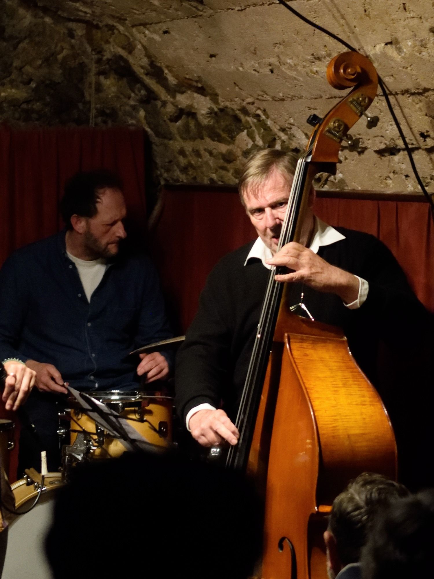 Ce dialogue, Barre Phillips l’a institué avec de nombreux autres contrebassistes. On citera pour l’Histoire Dave Holland, puisque c’est avec lui et toujours chez ECM qu’il a publié Music for Two Basses, un monument à la forme nouvelle, devenu depuis canonique : le dialogue entre basses, la passementerie des archets et des résonances du bois a été largement illustrée, depuis, par Phillips lui-même. On pense bien entendu à Joëlle Léandre dont le parcours, à l’instar de Douze Sons sorti chez nato, est marqué par la fraternité avec Phillips dont « Basse Profonde » est une forme de manifeste. Leur discographie commune n’est pourtant pas pléthorique, mais on notera un A l’improviste en 2011 chez Kadima Collective où chacun est dans son rôle : Joëlle, la tempête, enserre le vieux chêne Phillips qui ploie mais ne rompt pas, tout en quiétude.