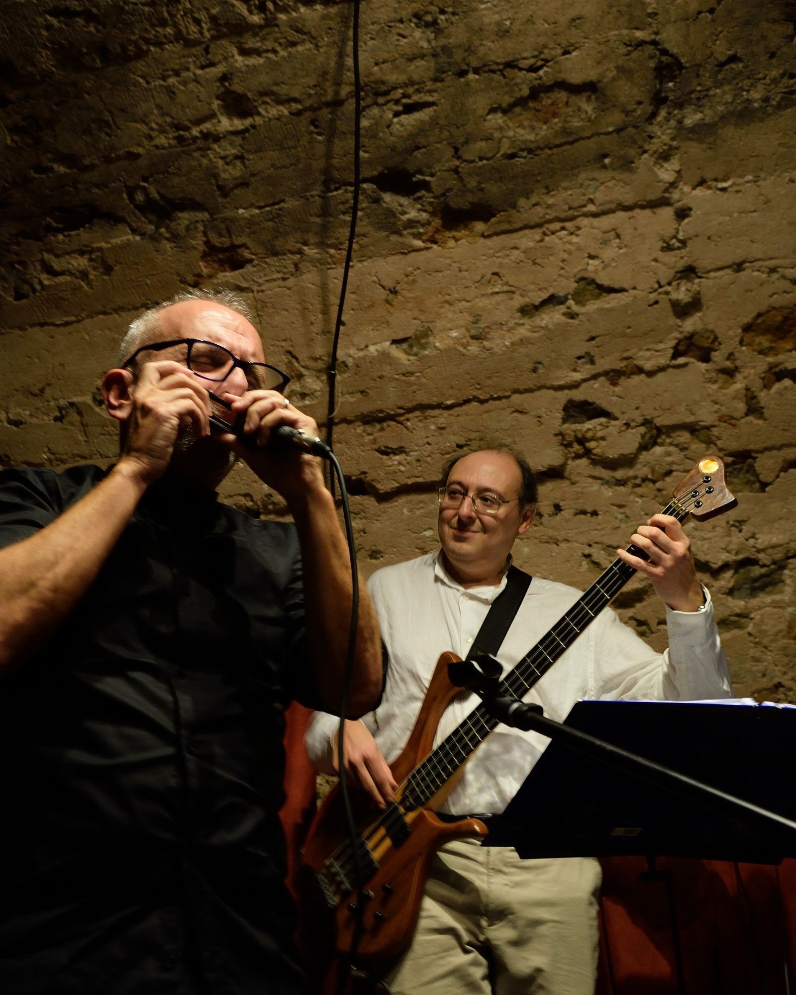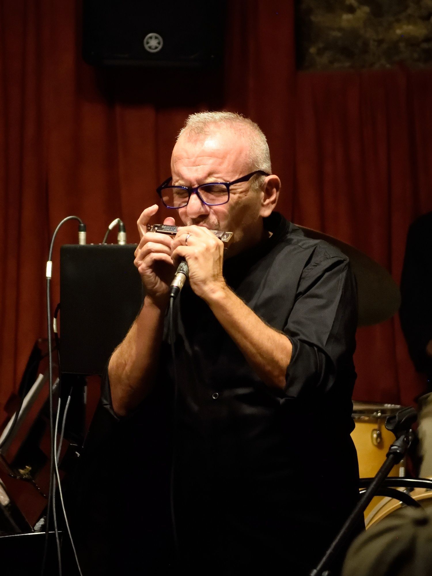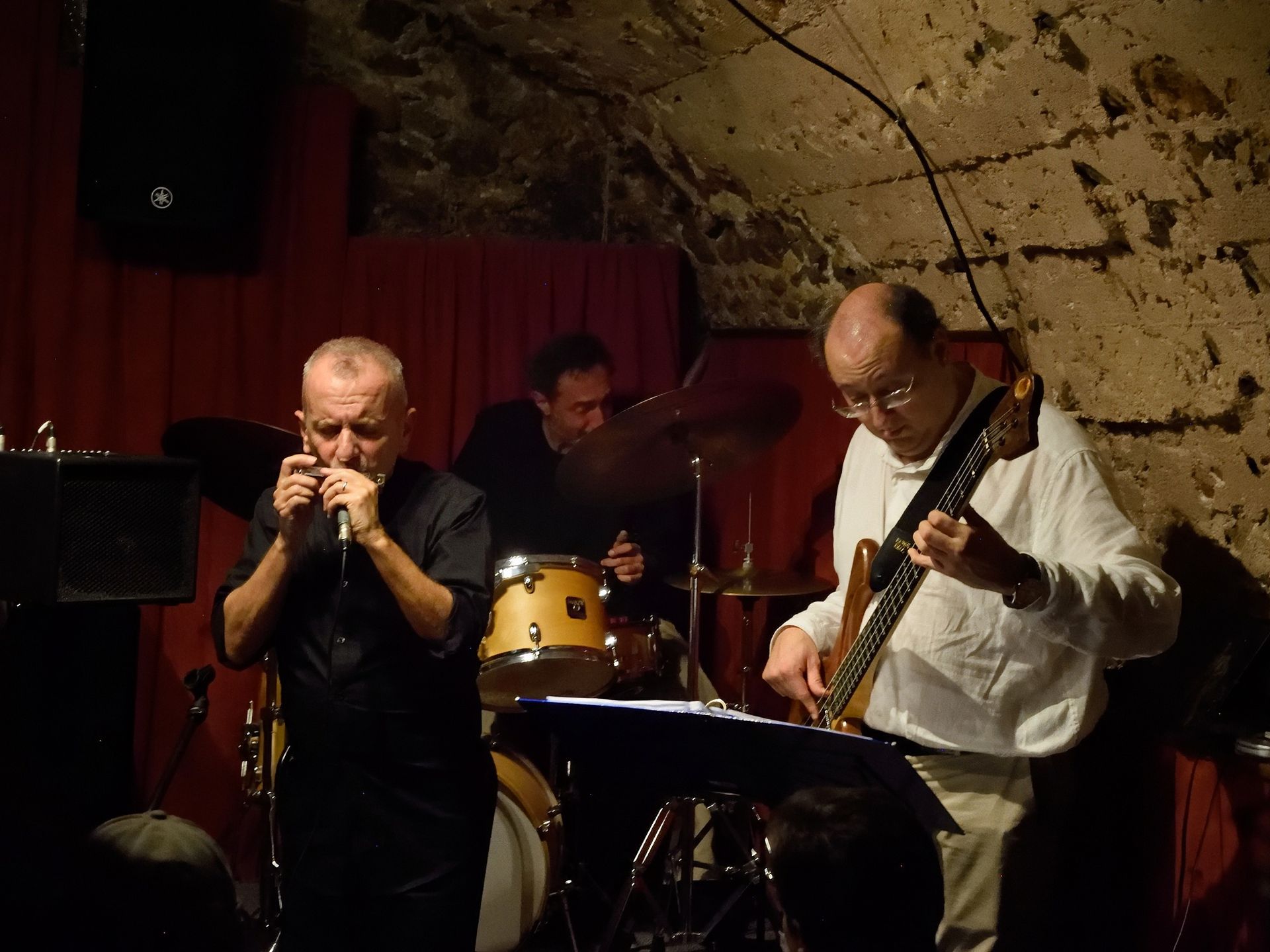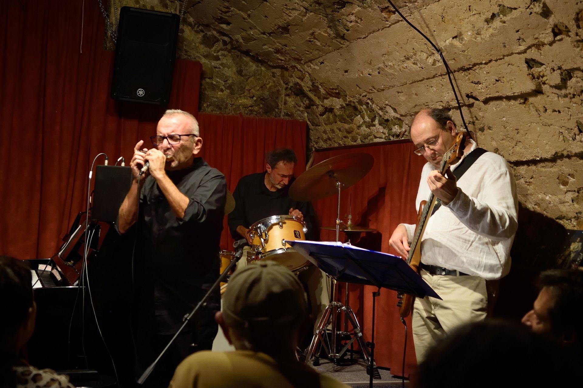 Le CHROMATIC TRIO (Enrico Testa, harmonica chromatique, guitare, chant, Alberto Micciché, basse, Daviano Rotella, batterie) a ouvert la soirée, avec un répertoire teinté d'Amérique du Sud, dense et chaleureux, avec notamment des improvisations formidables à l'harmonica, avec aussi un trio chaleureux et profond qui a envoûté le public.