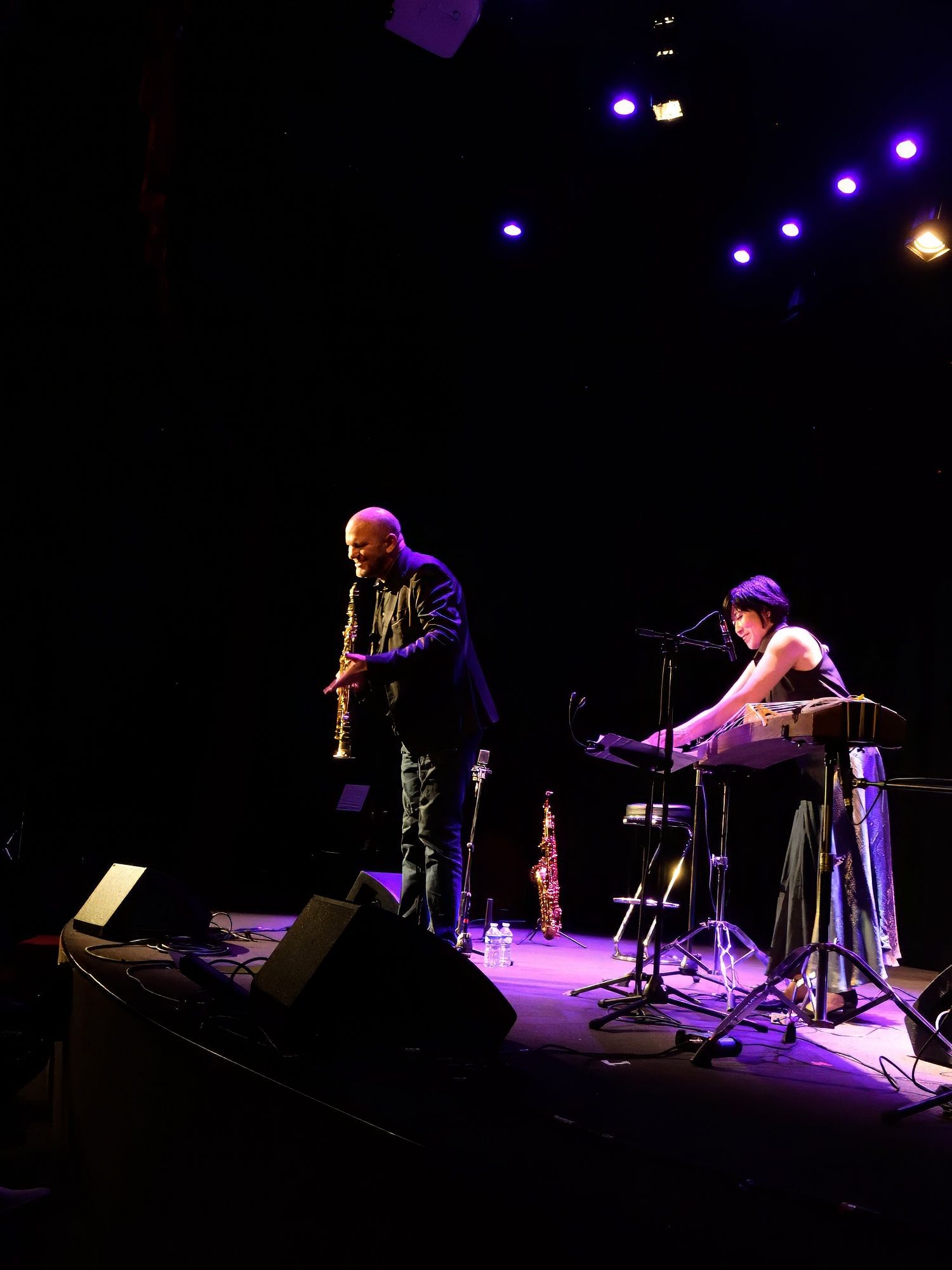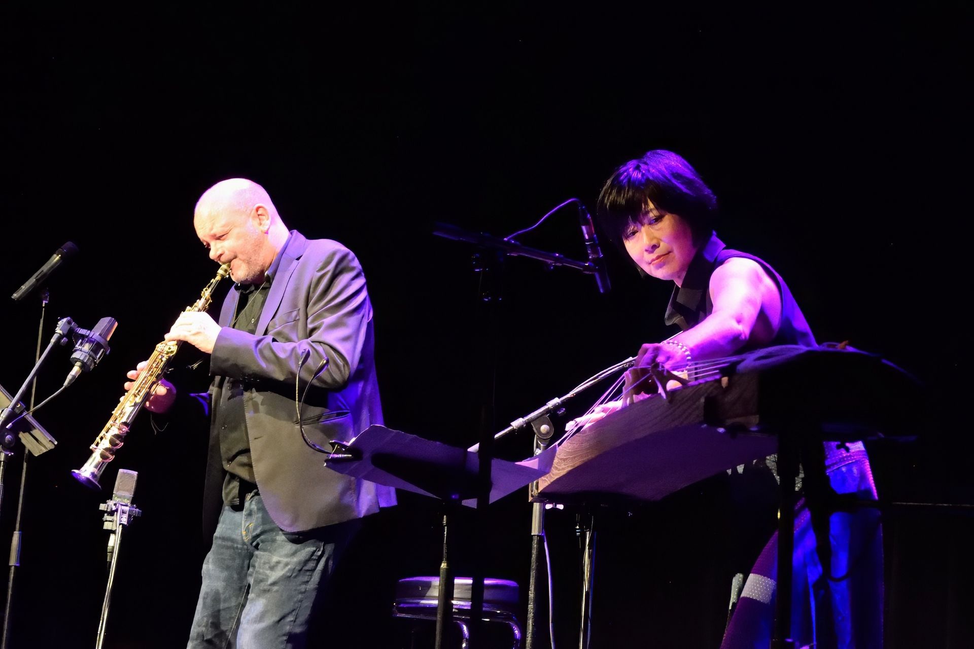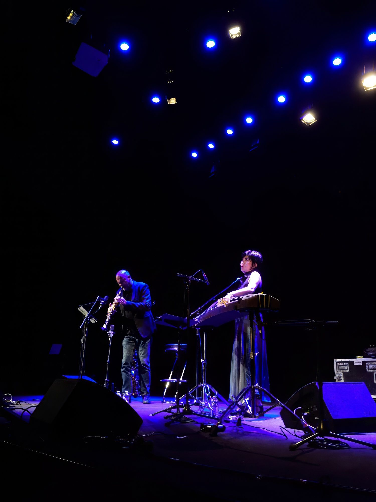 Voici un set de jazz tout à fait improbable : une joueuse de Koto, instrument à cordes traditionnel japonais, et un saxophoniste... On pouvait douter que la mayonnaise prenne. Et pourtant, quels instants de grâce ! Le son fusionnel des deux instruments (superbement mis en couleur par un autre magicien : Rémi Serafino) nous a embarqué dans une ronde à la fois envoûtante, rythmée et toujours changeante. Un vrai régal pour tous ceux qui ont eu la chance d'y assister.