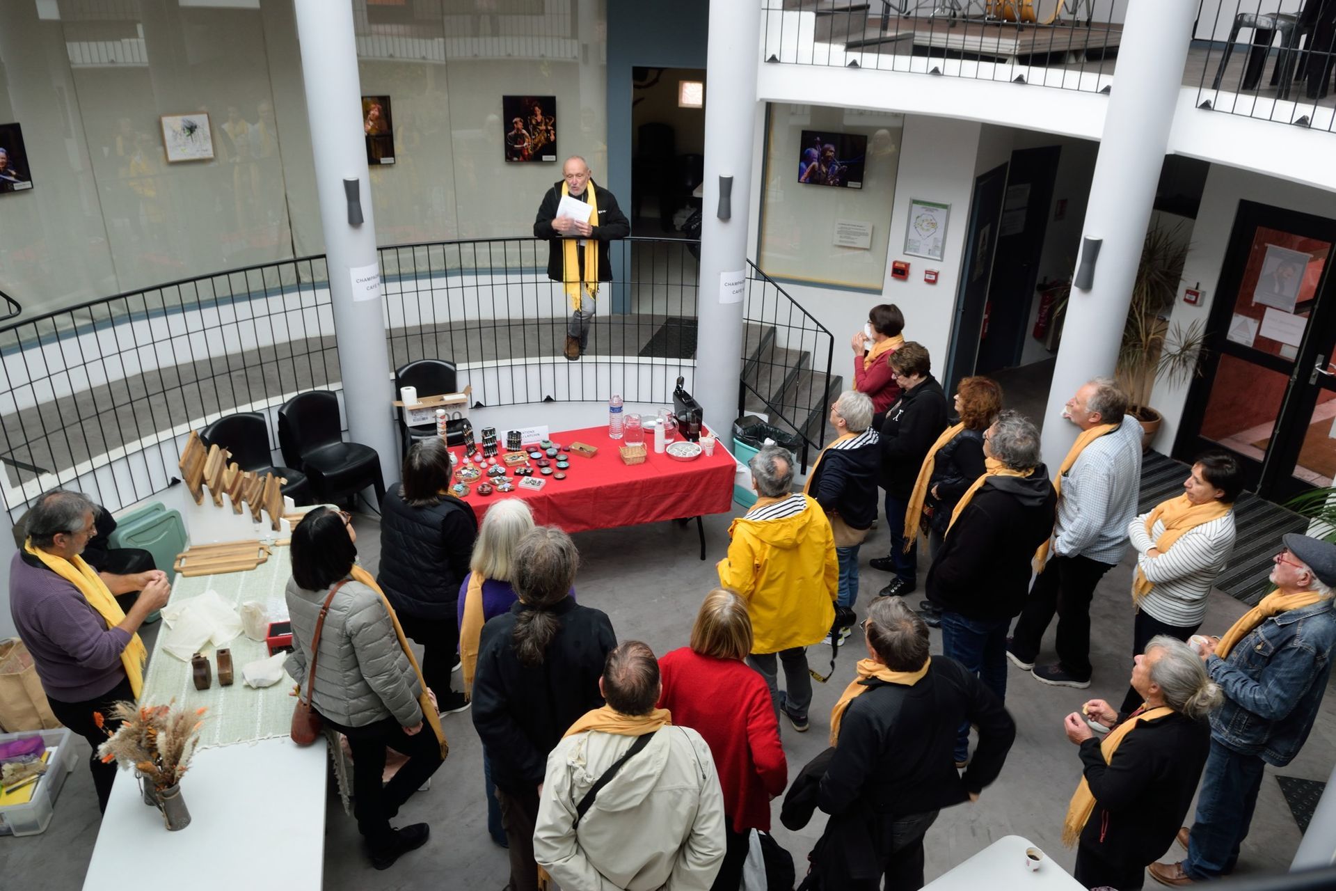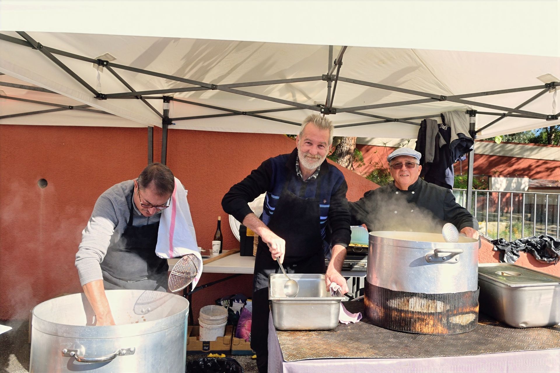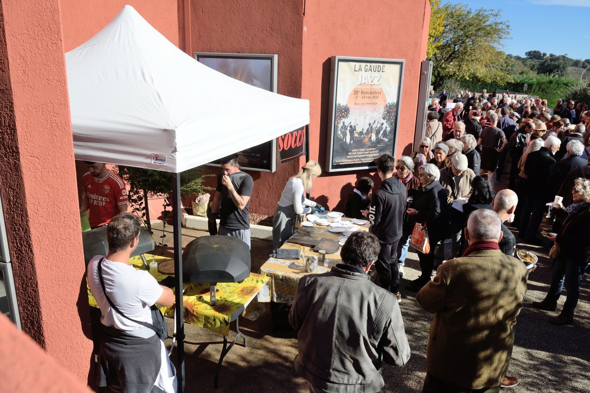 C'est devenu une institution : le samedi du festival, les gaudois se sont retrouvés sur le parvis de La Coupole pour l'apéro, après avoir écouté le concert du quartet de Léo Geller. Raviolis à la daube et boissons gratuits, socca, le tout servi par les bénévoles de Jazz sous les Bigaradiers et au son jazzy de l'Harmonie des Baous... Pendant ce temps, et toute la journée, un public nombreux a visité l'expo photo et les stands d'expo-vente : bijoux, lutherie et objets en bois, savons et autres objets en pâte Fimo. Super ambiance !
